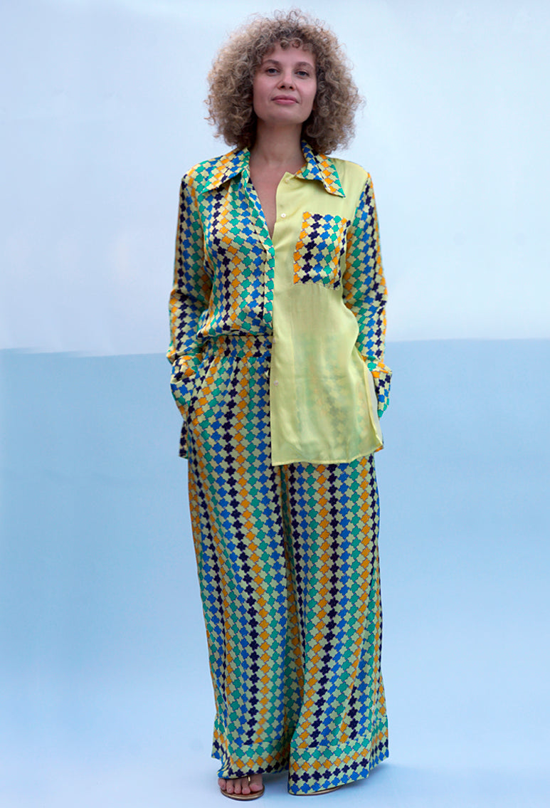 DIANA HOUNDSTOOTH SILK PANT YELLOW