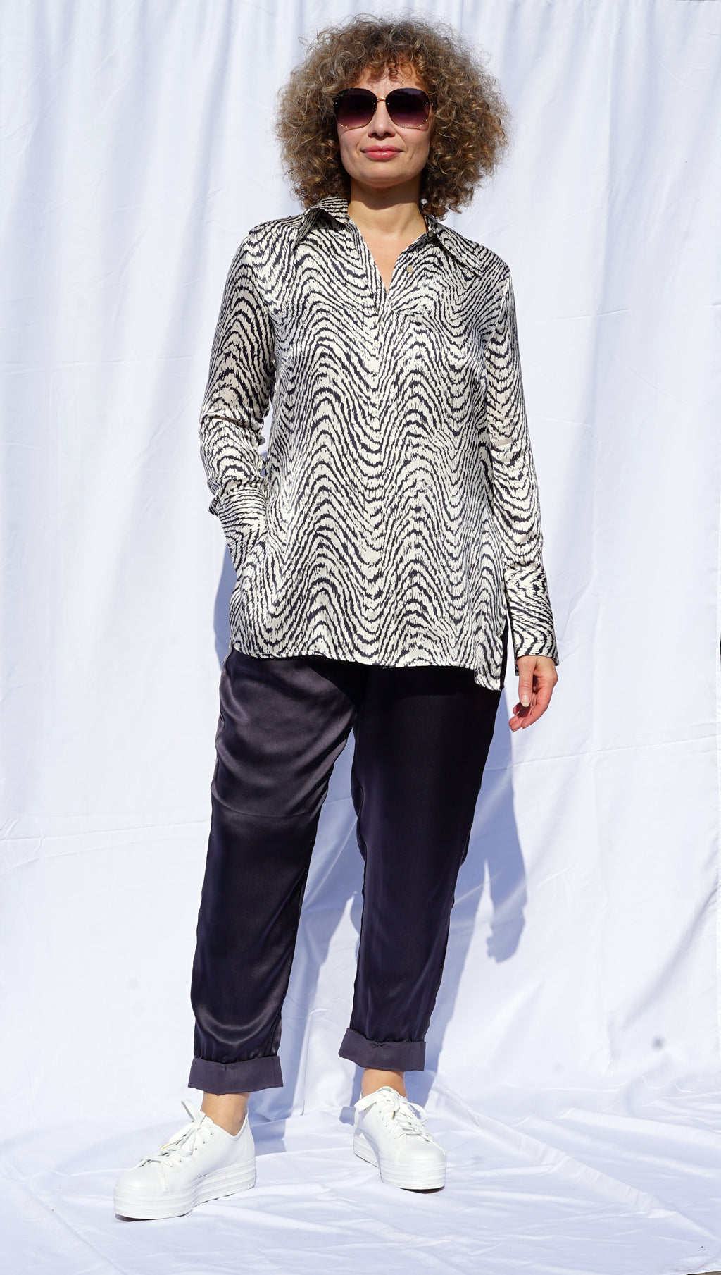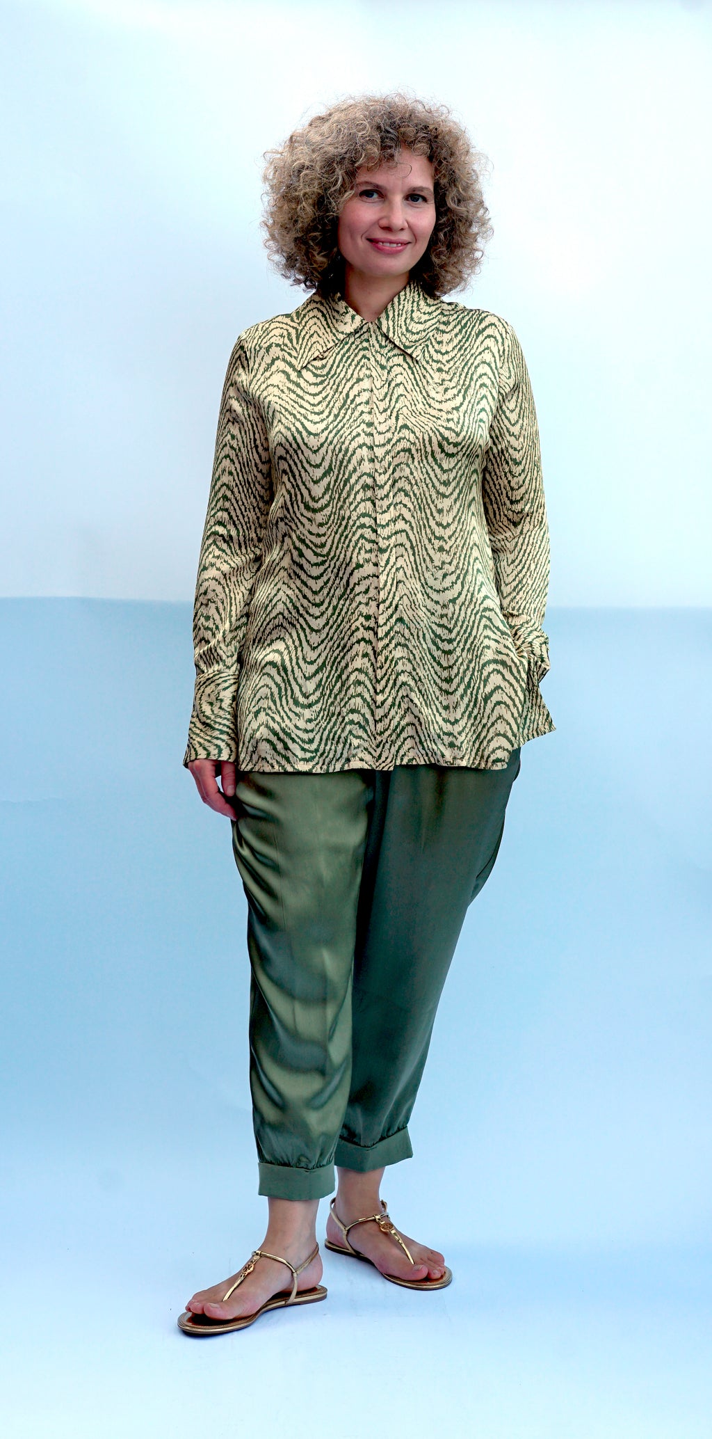 DINAH OLIVE ZEBRA SILK BLOUSE