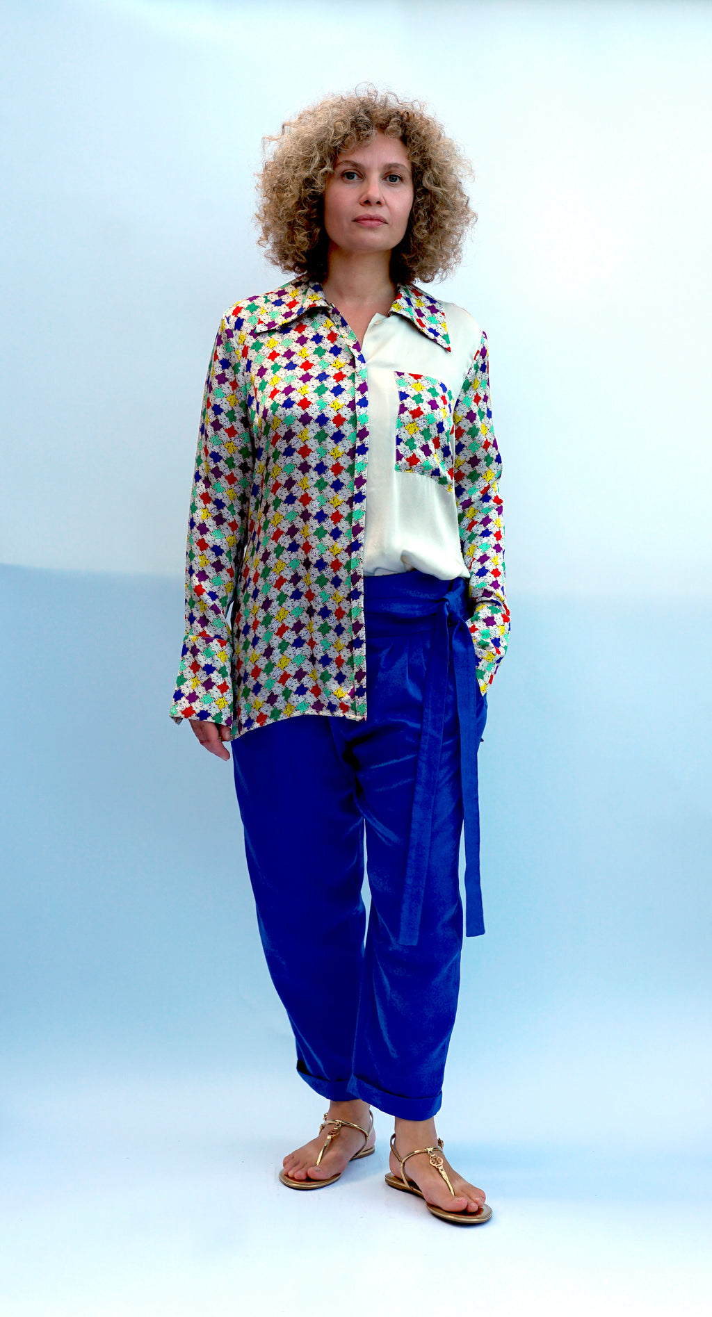 DIANA HOUNDSTOOTH SILK BLOUSE CANDY